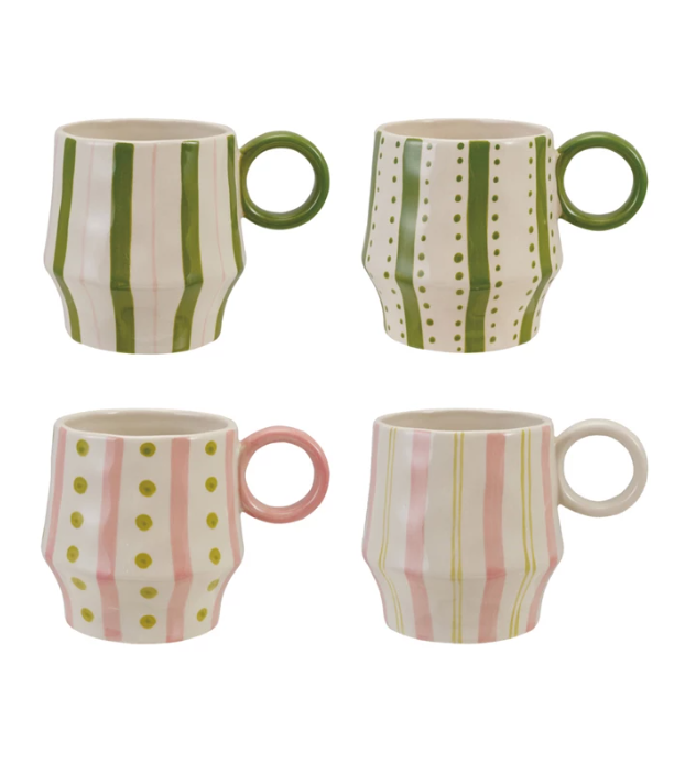 16 oz. Hand-Painted Mug with Striped Pattern, 4 Styles