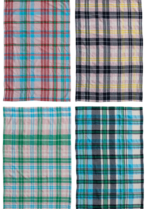 30"L x 18"W Woven Recycled Brushed Microfibre Tea Towel w/ Plaid Pattern, Multi Color, 4 Styles