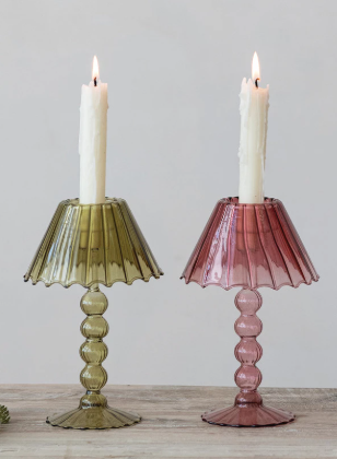 Glass Scalloped Table Light Tealight/Taper Holder, 2 Colors