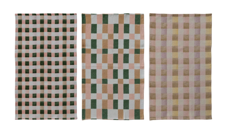 Waffle Weave Tea Towel with Check/Plaid Pattern, 3 Styles